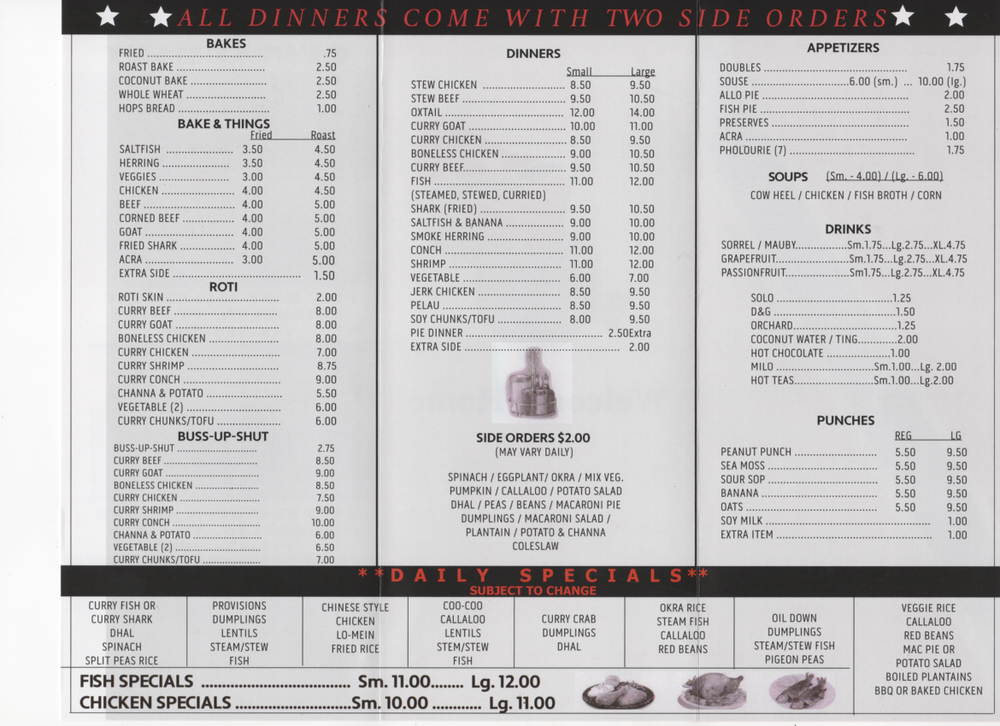 Located in Brooklyn, NY, Bake and Things is a Caribbean restaurant that offers delivery, takeout, and catering services. With a diverse menu featuring dishes like curry shrimp, buss up roti, oxtail, and doubles, customers rave about the fresh and flavorful food. Highlights include the seamoss drink, curry chicken roti, and the mac & cheese smothered in savory gravy. While some dishes may be overly salty for some palates, the generous portions and reasonable prices make this spot a must-try for Trinbago cuisine enthusiasts. The friendly service and cozy atmosphere add to the overall dining experience. Don't forget to try their homemade drinks for a refreshing treat. With a variety of payment options and wheelchair accessibility, Bake and Things is a welcoming destination for a delicious Caribbean dining experience.